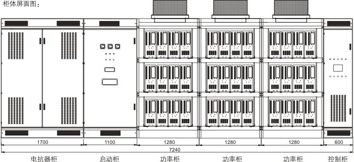 功率柜 3臺(tái),柜體尺寸1280×1200×2850